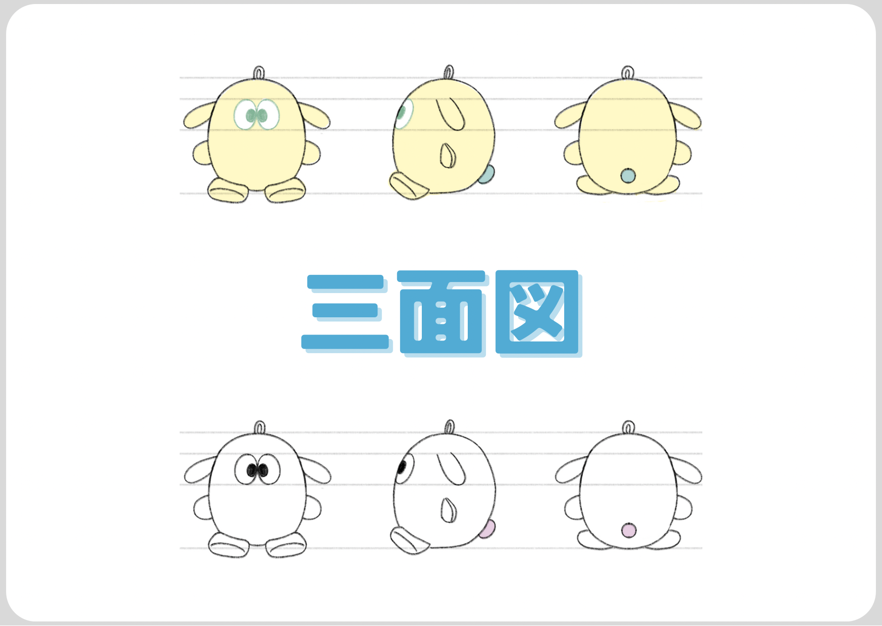 ぬいぐるみ工場とのスムーズなやり取りに欠かせない三面図を、hokuhoku舎が責任を持ってご用意します。